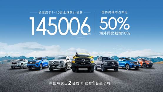 再创新高 长城皮卡10月销售12888辆 出口同比增长17%