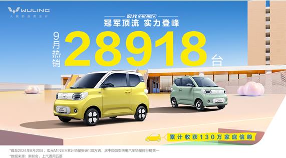 蝉联微型电动车销量冠军 宏光MINIEV九月销量28918台