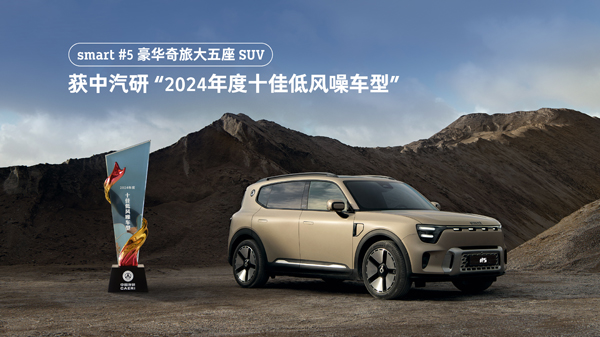 全新smart精灵#5荣膺中汽研"2024年度十佳低风噪车型"