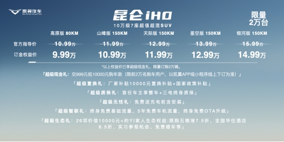 凯翼昆仑iHD上市 售价10.99-15.99万元