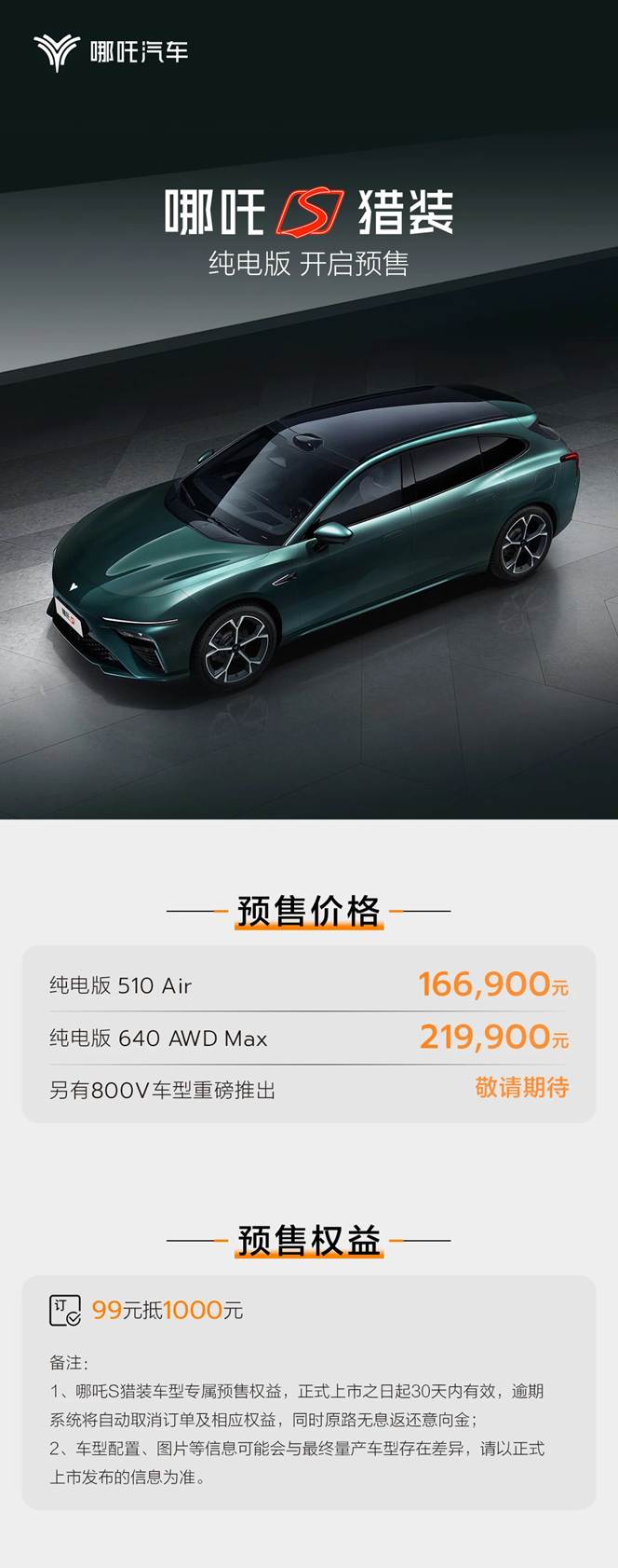 哪吒S猎装纯电版预售 售价16.69-21.99万元